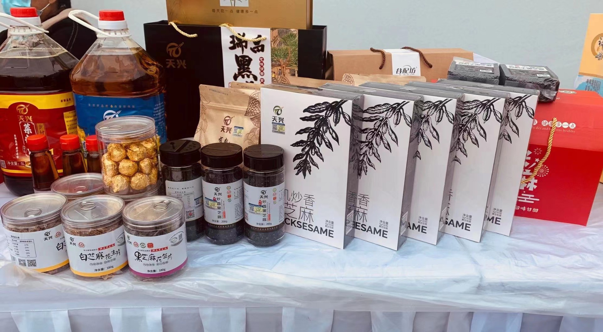 现场人很多,参展的企业也很多,有来自南昌、九江、赣州等的企业参展,各个企业面前的参展桌上摆着自己公司的很多产品。我司九江天兴农业发展有限公司推出了天兴有机炒香黑芝麻、天兴芝麻丸、天兴黑白芝麻片、天兴芝麻油和菜籽油、谷配坊炒香黑芝麻等众多芝麻产品,来往的人们对我们的芝麻丸反响好,黑芝麻丸无添加蔗糖,味道微甜不腻,健康时尚,受到大众喜爱。我司一系列黑芝麻加工产品,原料黑芝麻健康新鲜,自然绿色,来自优质原生态产地种植,好产地、好原料、好工艺,成就好品质。